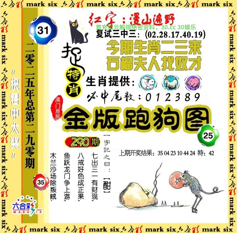 291期:大小中特【大数】开:狗44准 |