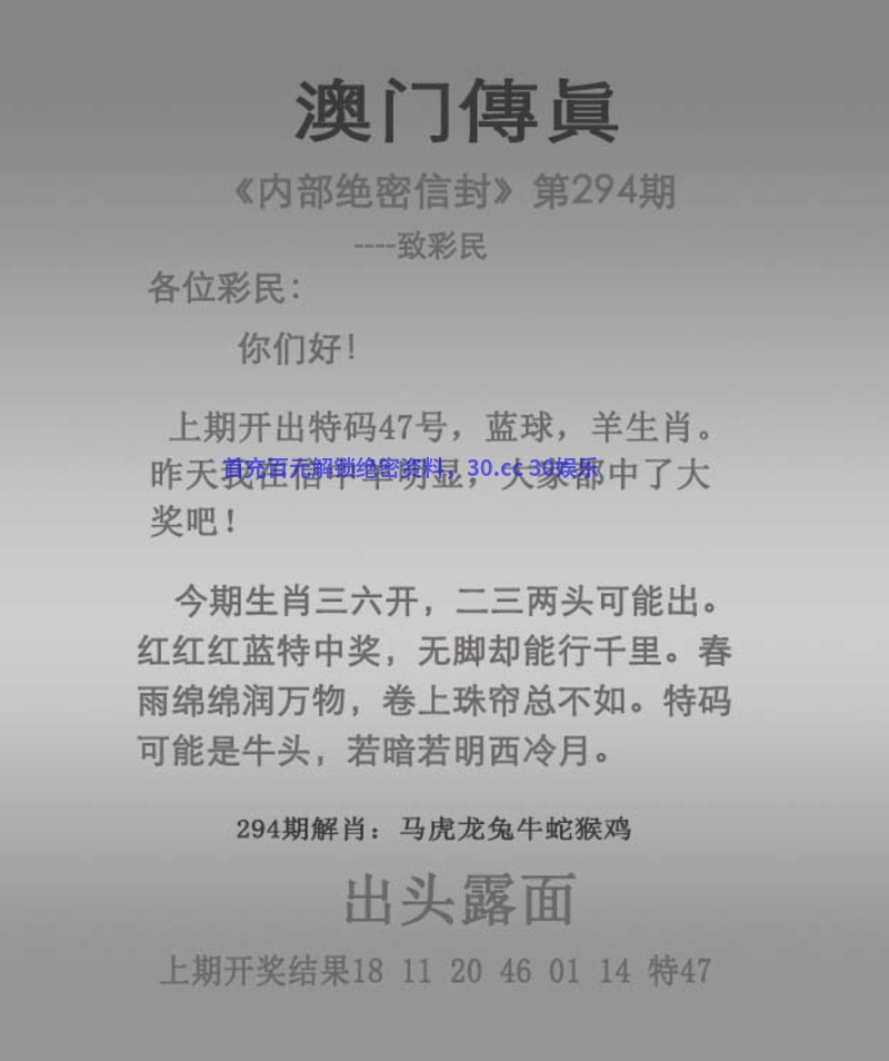 294期:正版【猜特输尽光】开發00准 【今期买羊输尽光,好运四六今复开】 |